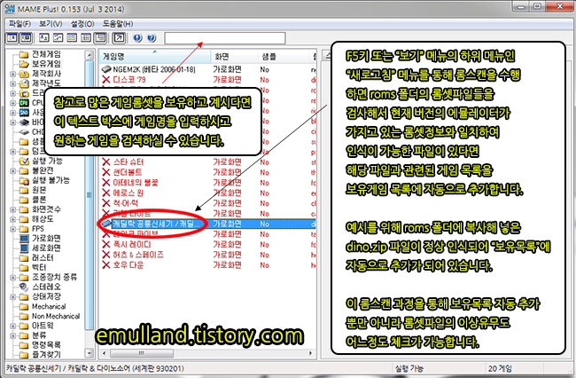 계열들은 초기 실행속도가 거의 예전수준으로 빨라졌지만 역시 롬셋 파일들을 검사해서 보유 목록란에 자동으로 정상적으로