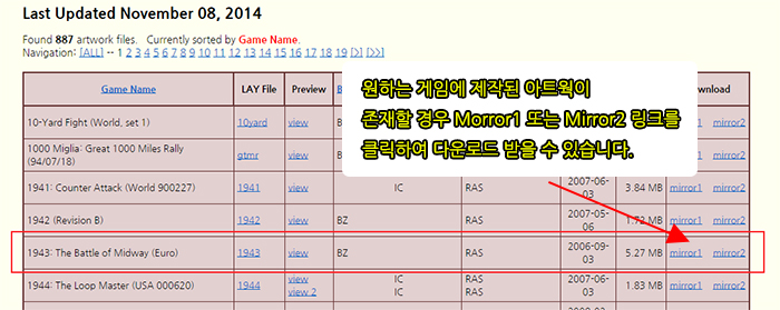 - 아래 링크를 클릭하여 알파벳 순으로 되어 있는 리스트 중에서 원하는 게임의 아트웍 파일을 받습니다.
