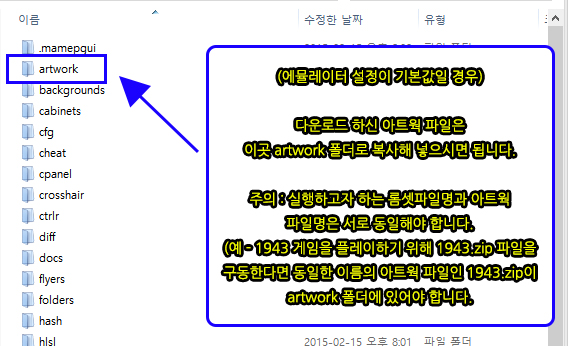 (대부분 단순히 해당 게임의 아트웍 파일만 artwork 폴더로 넣어주는 것만으로도 아트웍은 적용이 됩니다)