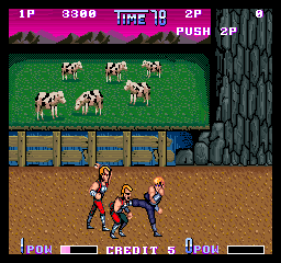 참고로 더블 드래곤 2를 시작하면 전편에 납치됐다가 힘들게 구출한 여친이 초장부터 악당들에게 기관총으로 끔살당하는