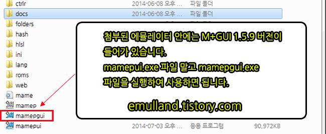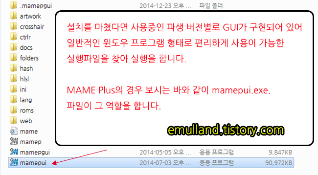 버전의 에뮬레이터에 설치하셨다면 최초 실행시 mamep.exe를 찾이 못해 실행파일을 선택하라는 메세지가 나옵니다. 파생버전