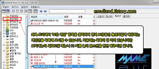 ● 좌측 트리중에 "보유게임 (Available Arcade)" 항목을 이용하시면 편리합니다.