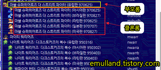 그럼 부모롬 한개만 받으면 되는데 웬 클론롬이 그렇게 많은가 하면 그 부모롬이 우리가 오락실에서 즐겨