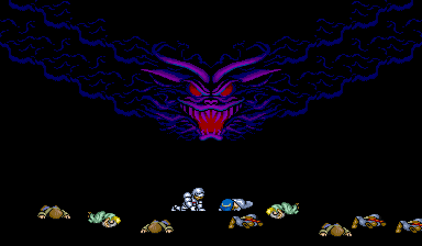Game-play is of a very similar vein to that of "Ghosts'n Goblins" - the classic run, jump and shoot action remains