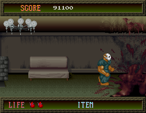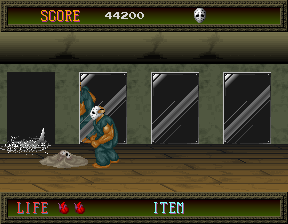 스테이지 끝에 이르면 릭이 자동으로 전진하는데 이때는 피격 판정이 없어서 데미지를 입지 않는다.