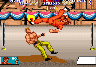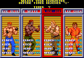 버튼은 펀치, 킥, 점프 등의 3버튼으로 펀치 + 점프, 킥 + 점프 등의 조합으로 두 가지 필살기를 사용할 수 있다.