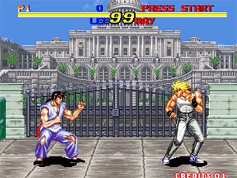A reconstructed sprite-ripped bootleg of "Fighter's History" with nine selectable characters.