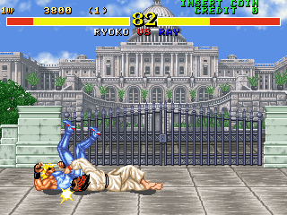 Different to Street Fighter II, some stages of Fighter's History show locations actually existing in the