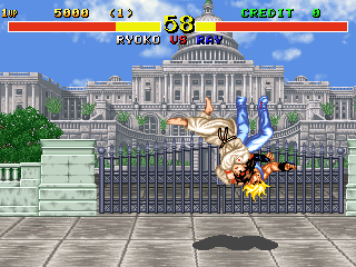 This is one of the rare Japanese-made fighting games where the characters yell out the names of their
