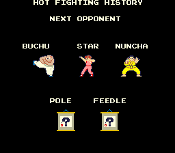 When you start the game, there will be a screen that lists the opponents for that block of fighting.