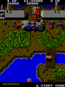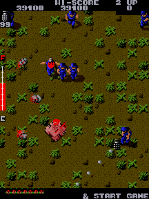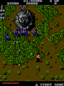 SNK's answer to Capcom's 'Commando', released a year earlier, one or two players take on the role of a