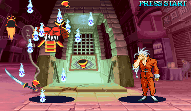 * Priest Bishamon : On the character select screen, go to Bishamon, hold Start and press any punch or kick