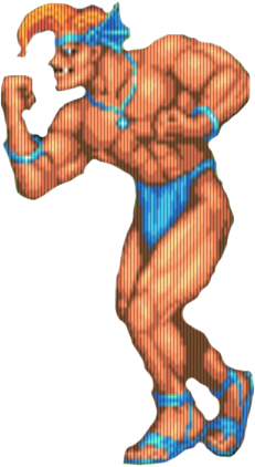 우락부락한 생김새에서 알 수 있듯이 해거 타입의 잡기형 파워 캐릭터. 근육 버스터나 파일 드라이버를 구사할 수 있다.