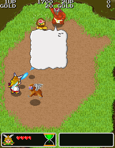 당시로서는 확대 축소를 활용한 화려한 그래픽에 돈을 모아 아이템을 구입하는 RPG적인 요소를 도입하여 일견 평범해 보이는