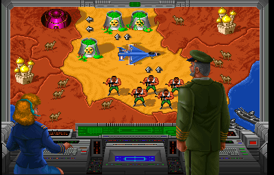 General Ahkboob, himself an obvious parody of Sadam Hussein, has set his vast army of infantry, tanks