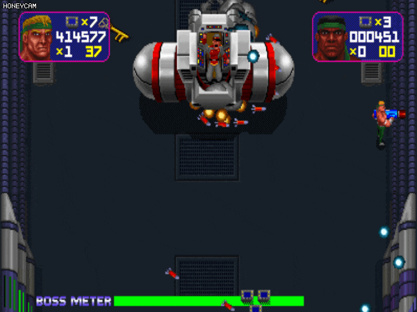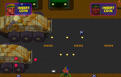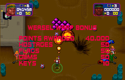 1 or 2 players must fight through the enemy-packed levels, rescuing reporters and civilians as they go.
