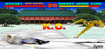 말도 안되는 기본잡기 거리를 자랑했던 킹도 만만찮은 사기캐릭터. 그래픽적 측면에서는 버추어 파이터 1에도 있었던 광원처리가