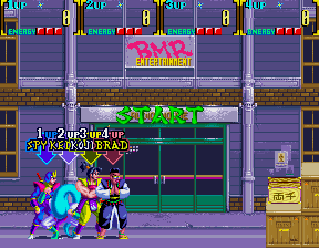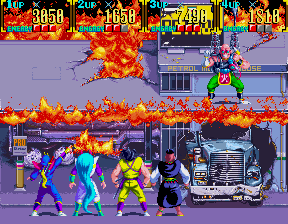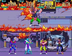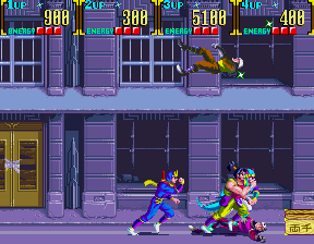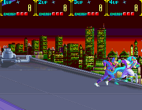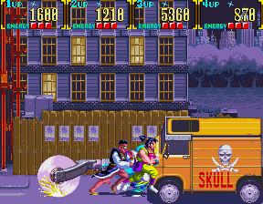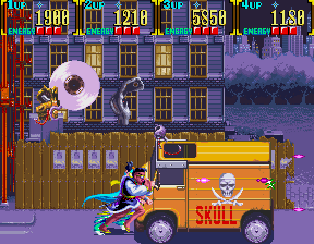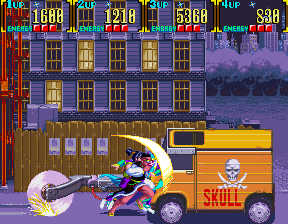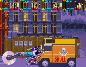 스테이지 8 - 스컬 엔터프라이즈 본사 외부 (이 스테이지의 보스가 바로 처음에 플레이어 캐릭터 1명을 납치한 그놈이다)