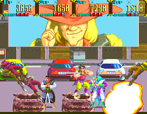 전체적인 흐름은 선셋 라이더스와 많이 유사하며, 이번에는 거기에 근거리 공격과 라이프가 추가되었다.
