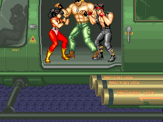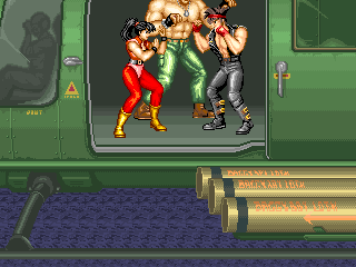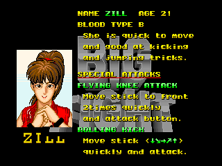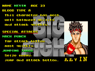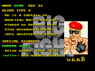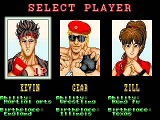 A side scrolling beat 'em up featuring fighters : Gear, Kevin, and Zill.