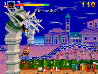 Inguz begins each stage and life with a full health meter of eighty units, but food can be found that will