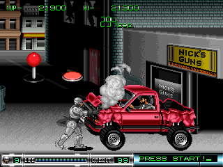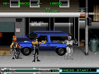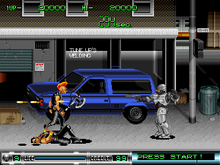 * The stage 2 boss does not exist in the actual movie, and as for RoboCop chasing Cain