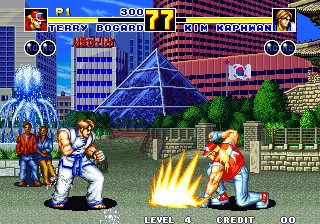 거기에 용호의 권에 이어서 네오지오의 성능을 살려 스트리트 파이터 2를 능가하는 화려한 그래픽을 선보여 플레이어들의 눈을