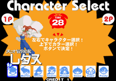 An anime style fighting game reminiscent of "Waku Waku 7", also by Sunsoft.