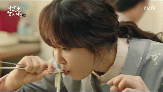 라면으로 허기를 달래는 해녀 할머니들.gif