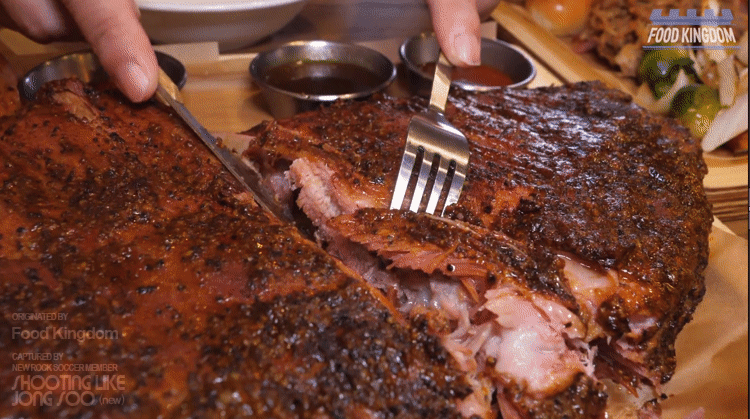 부산 기장군, 참나무 장작으로 구워내는 텍사스식 훈연 바베큐.gif