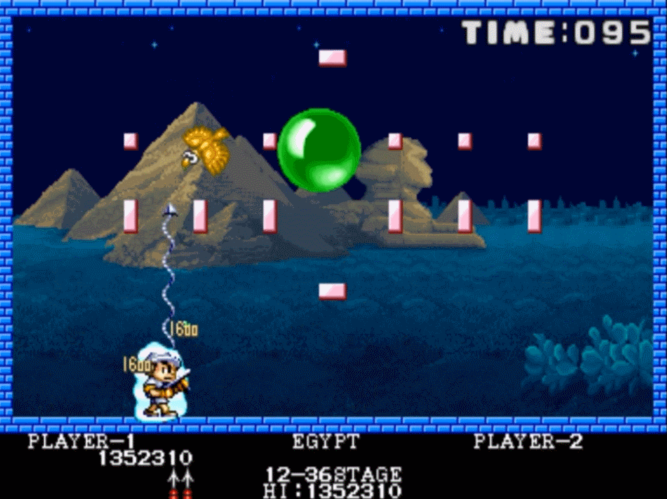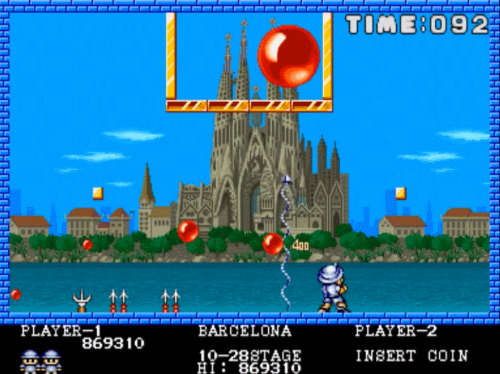 게임의 내용인 즉, 주인공이 작살로 커다란 풍선을 터뜨리면 그 풍선이 작아지면서 두개로 나누어지고, 또 터뜨리면 또 작게
