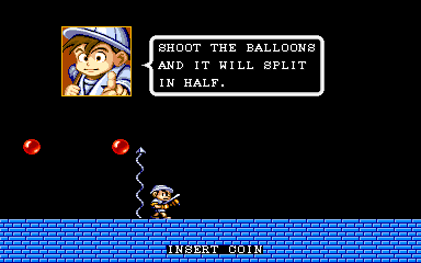 Player start each stage armed with only a single-shot harpoon, but some balloons, when popped, release